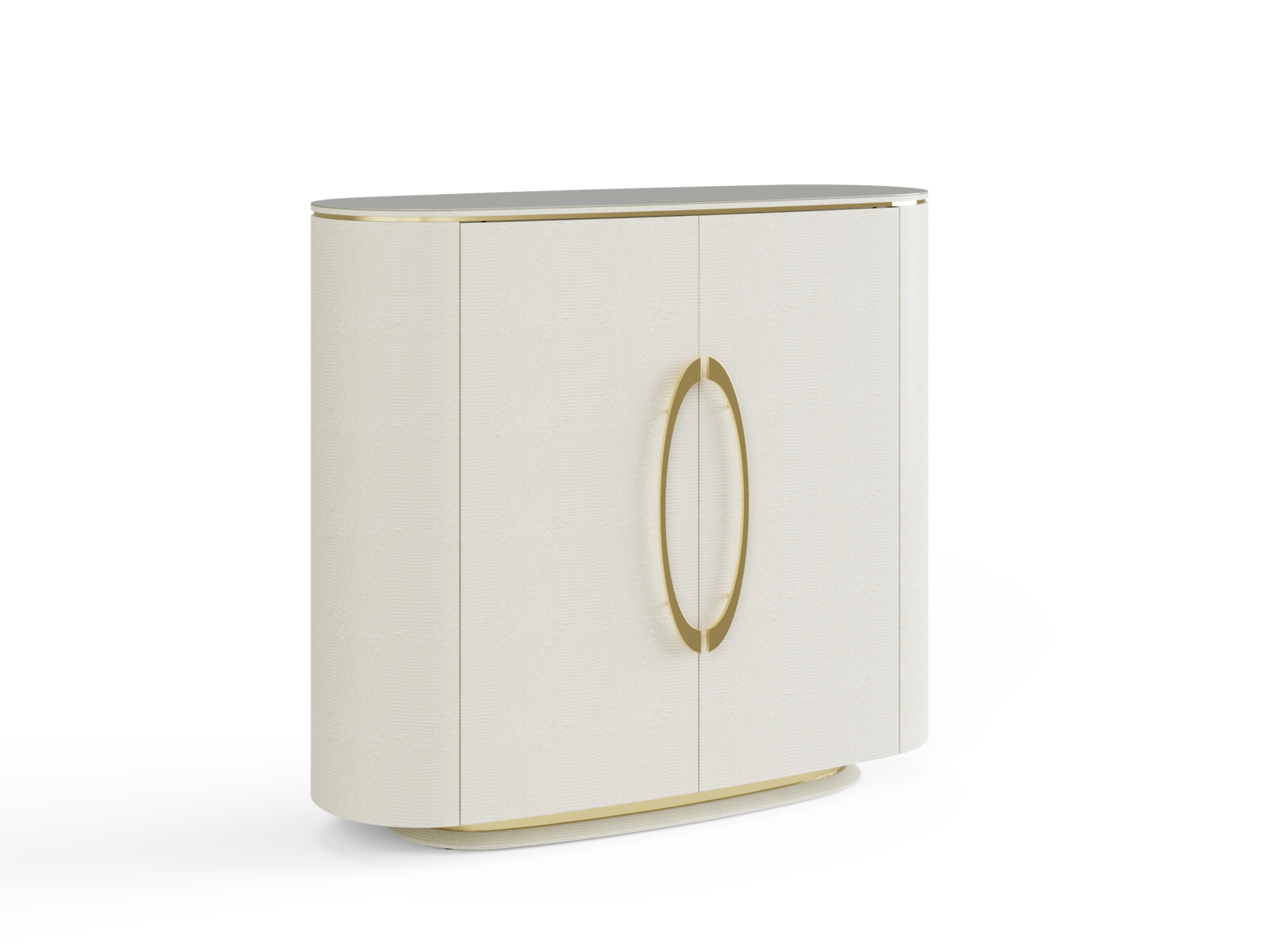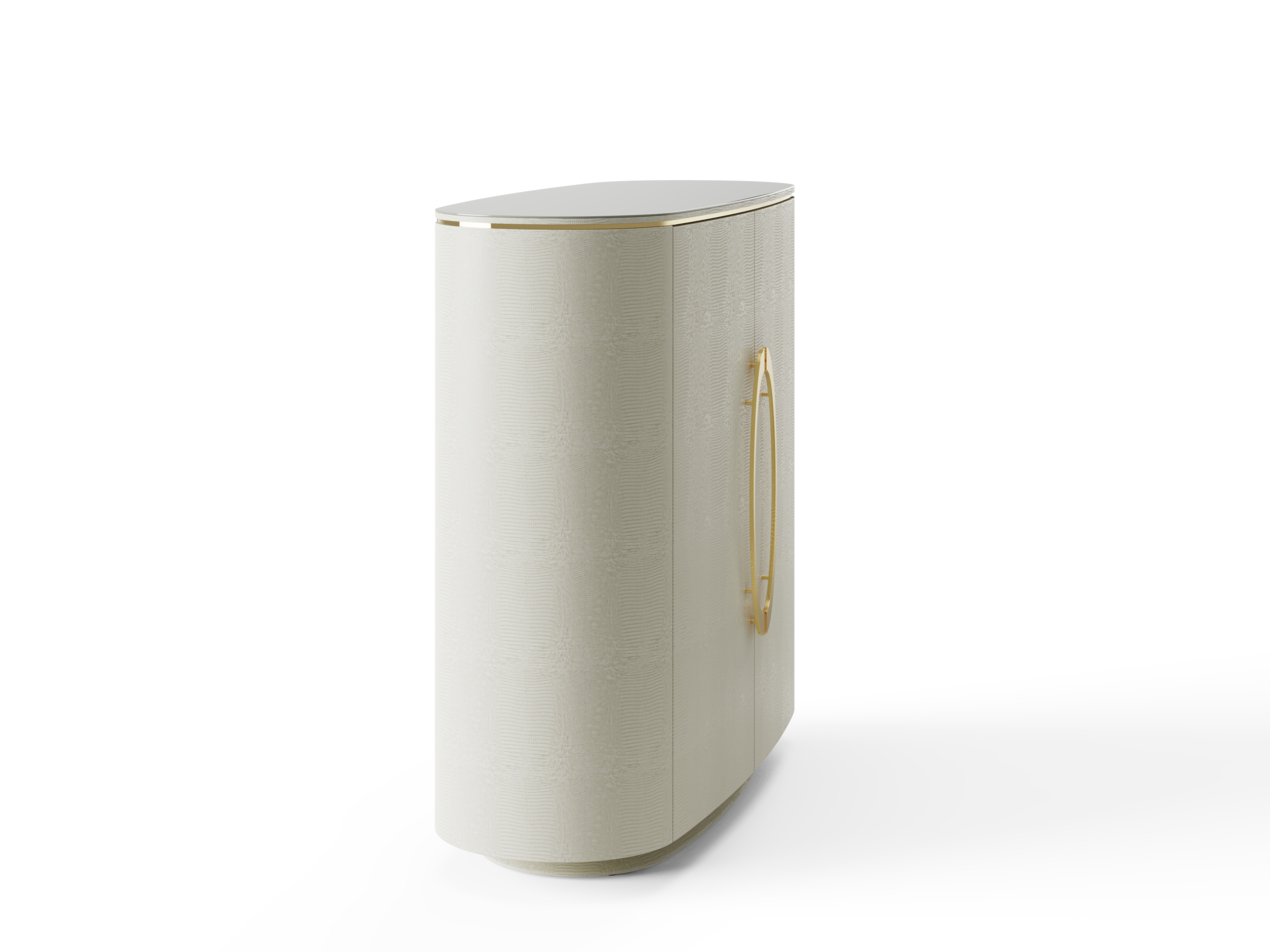 Acabamento das Portas: revestidas em recouro com efeito curvado.